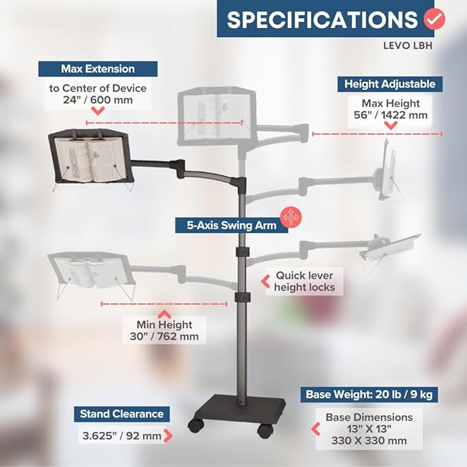 Levo Hands Free Book Stand for Hard Covers, Paperbacks, CookBooks, TextBooks, Magazines