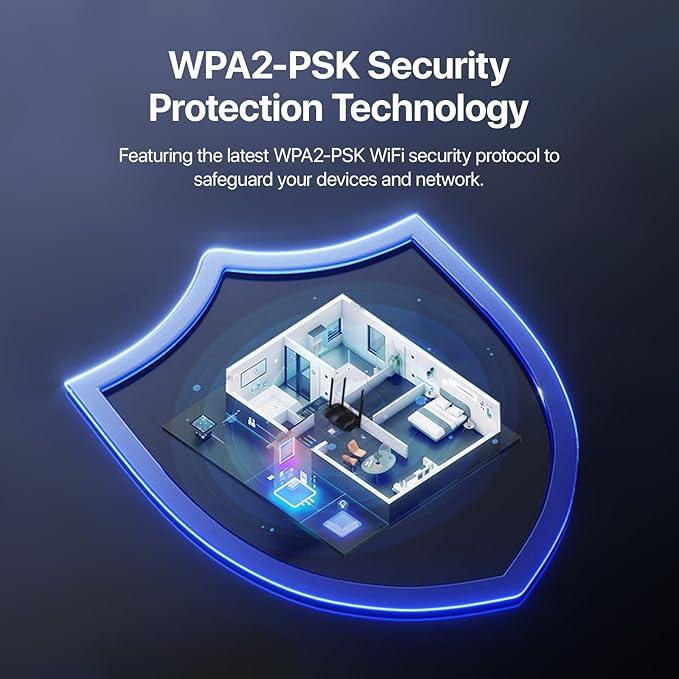 - 𝐒𝐞𝐜𝐮𝐫𝐞 𝐖𝐢-𝐅𝐢 𝐍𝐞𝐭𝐰𝐨𝐫𝐤 — Use WPA2-PSK to encrypt the WiFi password to protect your network and connected devices from hacker attacks