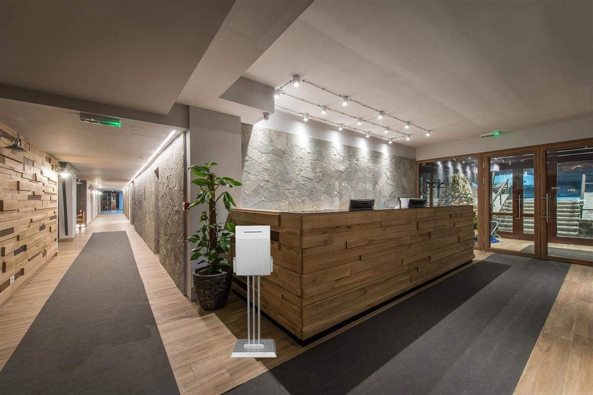 Displays2go Steel Ballot Box for Floor, with (2) 4.5-inch Brochure Pockets, 45-inch-tall Suggestion Box Stand – Silver