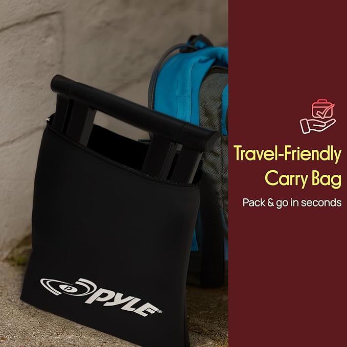 Pyle Portable Folding Laptop Stand - Foldable Laptop Stand with Adjustable Height, Secondary Accessory Tray for iPad, Tablet, DJ Mixer, Workstation, Gaming, Home Use and Carrying Bag Included
