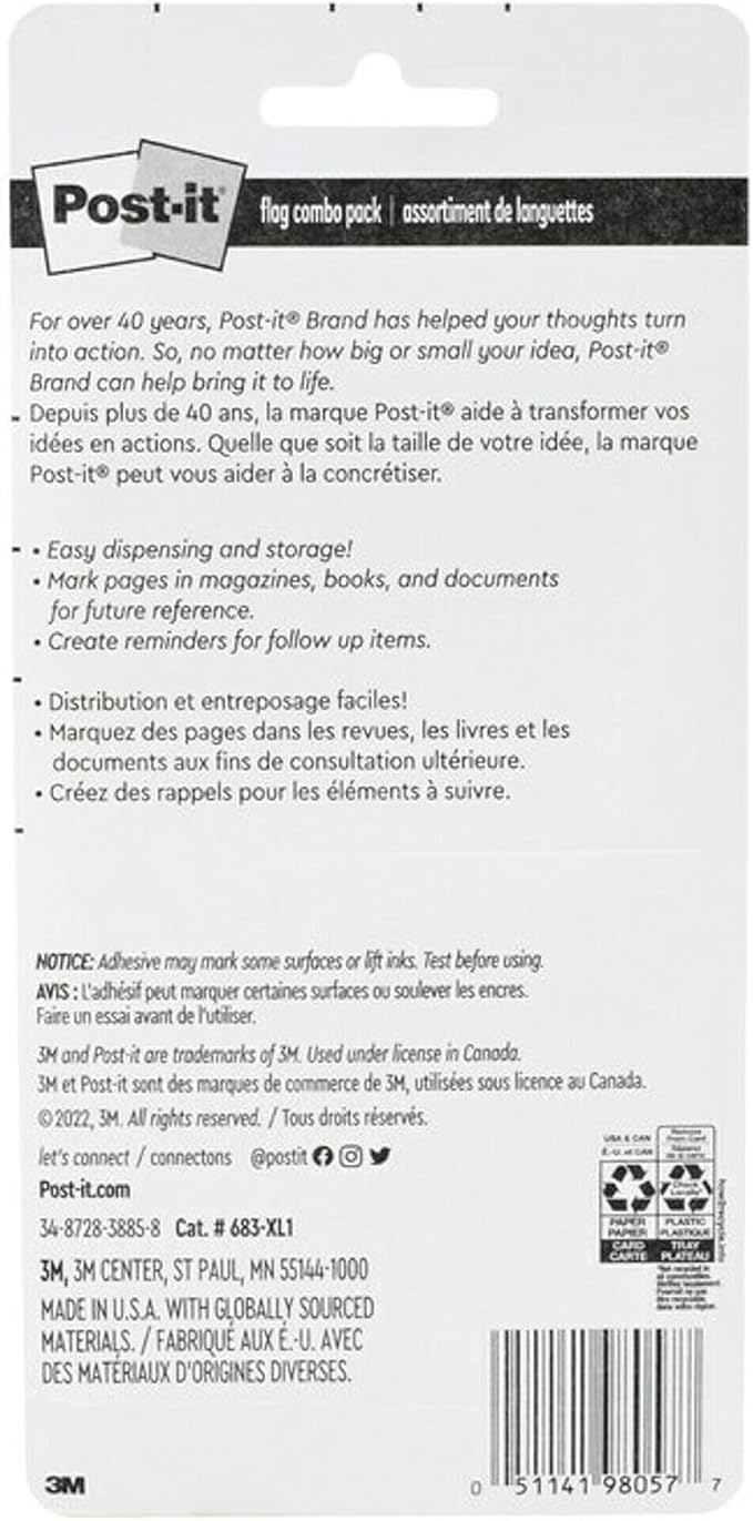 Post-it Flags Combo Pack, 4 On-The-Go Dispensers/Pack, 120 .94 in Wide and 200 .47 in Wide Flags, Assorted Colors (683-XL1)