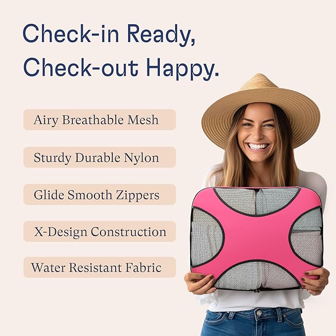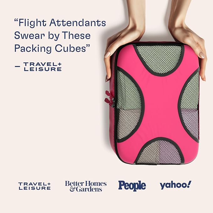Shacke Premium 5 Packing Cubes Set - Lightweight Mesh Travel Luggage Organizers with Laundry Bag, 5-Piece Suitcase Storage System (Precious Pink)