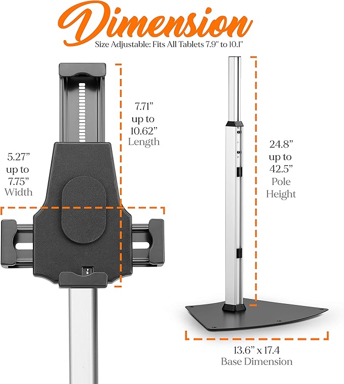 - HEIGHT ADJUSTABLE: The metal tablet public case is tilt adjustable up to 90 degrees w/ 360-degree rotation. Height can be adjusted from 24.8-42.5β. Allows landscape or portrait device mounting. Install on office lobbies, showrooms, conference rooms