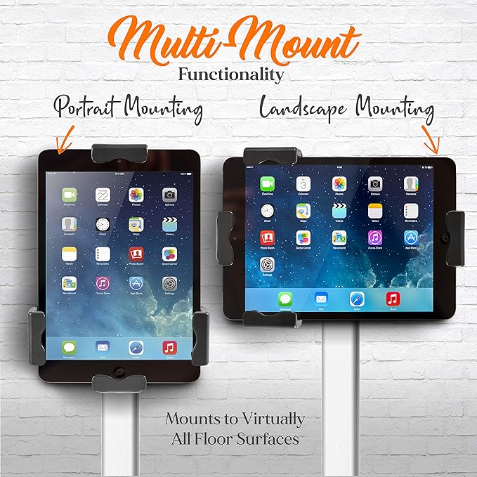 - WORKS W/ IPAD: The aluminum tablet display kiosk works w/ iPad Mini, 1, 2, 3, 4, Air as well as Kindle, Samsung and Android. Fits tablets up to 10.1β. Allows convenient access when installed in high traffic areas like front desks, lobbies or counters