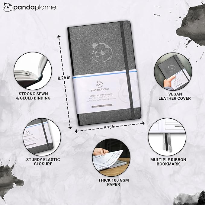 Panda Planner Classic A5 Daily Planner 2026 – Undated Quarterly & Productivity Planner with Hourly Schedule, To Do List, Daily Journal, Goal Planner, Habit Tracker & Gratitude Organizer – Black