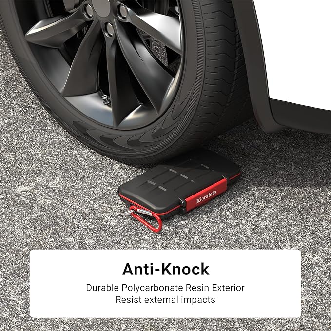- 【IPX5 Water-resistant】Kiorafoto SD card case is certified by professional institutions and has a waterproof grade of IPX5.If your backpack is wet by rain accidentally,water splashing resistant is the key.