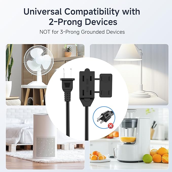 - Universal 2-Prong Compatibility: This white extension cord is compatible with most 2-prong cords on small appliances and consumer electronics. This cost-effective 2-pack includes a lifetime warranty for lasting value.