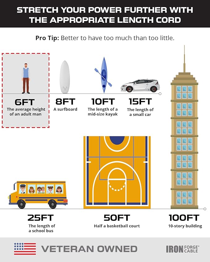 - Integrity in Service: Iron Forge Cable, a U.S. veteran-owned business, stands behind its heavy duty extension cord 6 ft 3 prong. We're here to help resolve any issues that you may have on your 6 foot heavy duty extension cord.