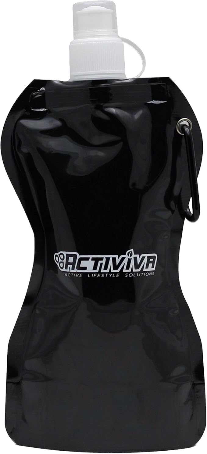 Collapsible Reusable Water Bottle with Carabiner Clip by Activiva - Light Weight Leak Proof Foldable Drinking Water Bottle - Non-Toxic BPA Free - 16.9 oz - 4 Pack