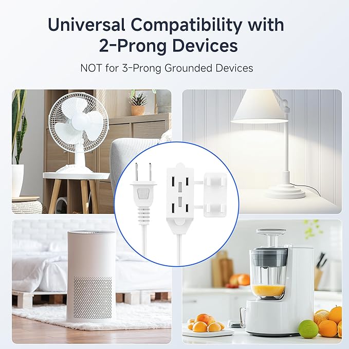 - Universal 2-Prong Compatibility: This white extension cord is compatible with most 2-prong cords on small appliances and consumer electronics. This cost-effective 2-pack includes a lifetime warranty for lasting value.
