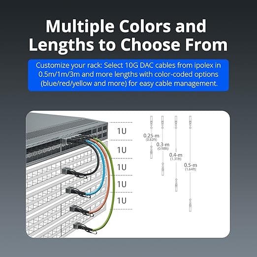 ipolex 10G SFP+ Cable, Direct Attach Copper(DAC) Passive Twinax Cable, for Cisco SFP-H10GB-CU0.5M, Ubiquiti UniFi UC-DAC-SFP+, Meraki, TP-Link TL-SM5220-0.5M,Mikrotik and More, 0.25m~7m