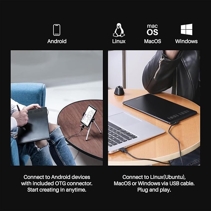 - [Multi-OS Compatibility]: H640P graphic drawing tablet works with Mac, Windows and Linux PC as well as Android smartphone or tablet (OS version 6.0 or later). It is also available for left-handed user.