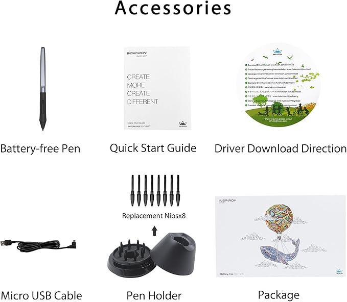 - [Customize Your Workflow]: The 8 easy accessable press keys on the H950P drawing tablet for pc can be customized to your favorite shortcut so that your creative work become smoother and more efficient. You also can change the shortcut setting for different apps in Huion driver.