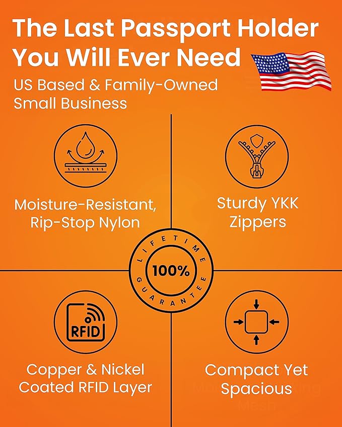 - WORRY-FREE DESIGN ALLOWS YOU FULLY ENJOY THE TRAVEL EXPERIENCE: The Family Passport Wallet is designed for light-weight durability and comfort. Zippered pockets keeps your valuables organized and the rip-stop nylon with moisture-wicking material keeps items dry and protected. Security for the whole family!