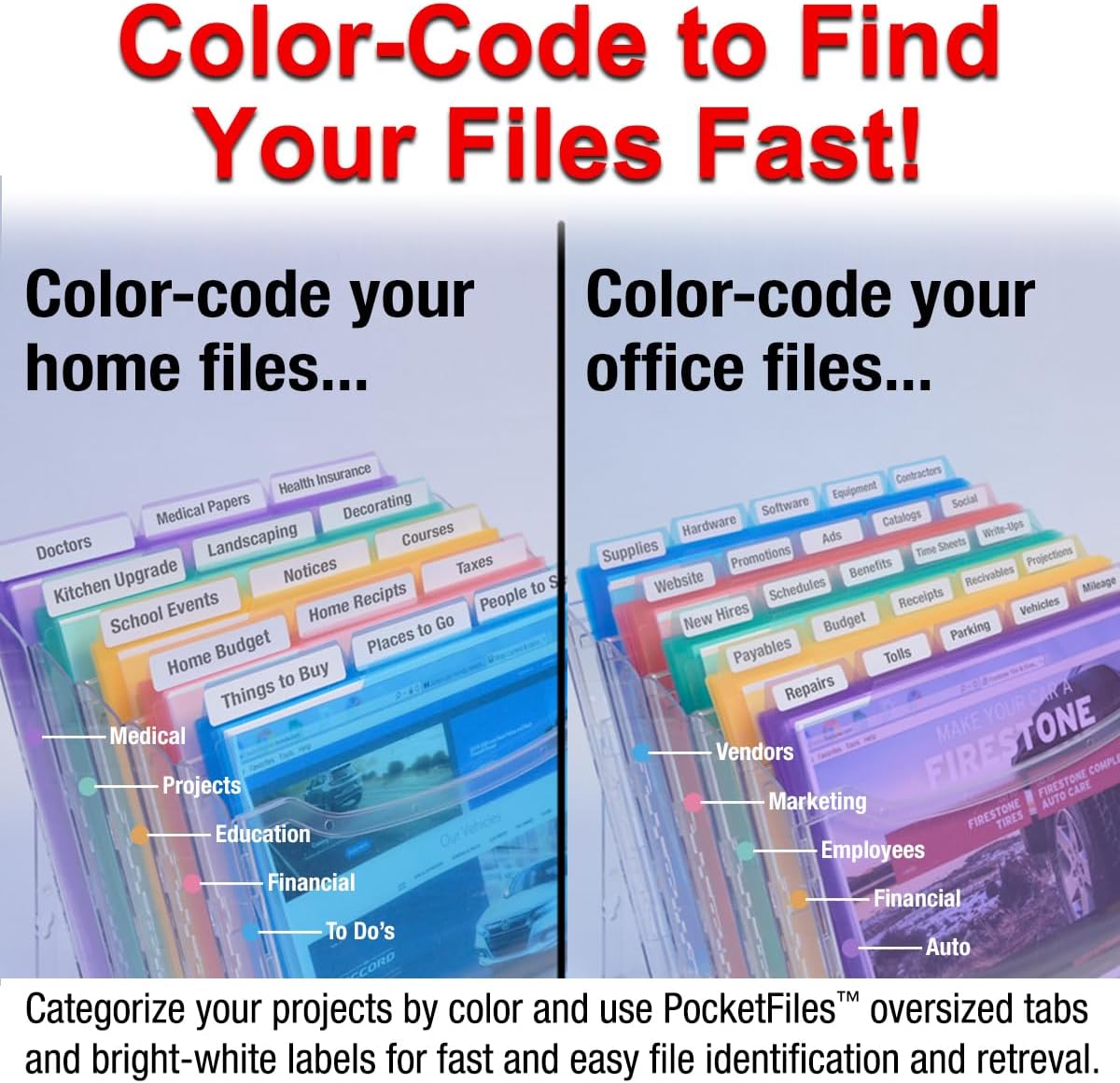 - NEVER BUY MANILA FILE FOLDERS AGAIN - Our StationMate complete filing system includes 25, 5th-cut heavy duty, translucent PocketFile Project Files in assorted colors ($ 18.74 value). Our PocketFiles are 5-Star rated on Amazon because of their functionality and durability.