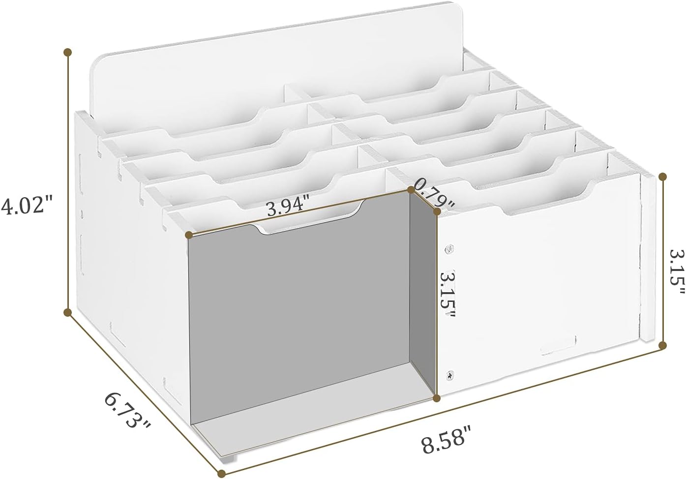 Wooden 12-Compartment Desktop Organizer Multifunctional Storage Box Desk Supplies for Cell Phones Holder White (12-Grid)