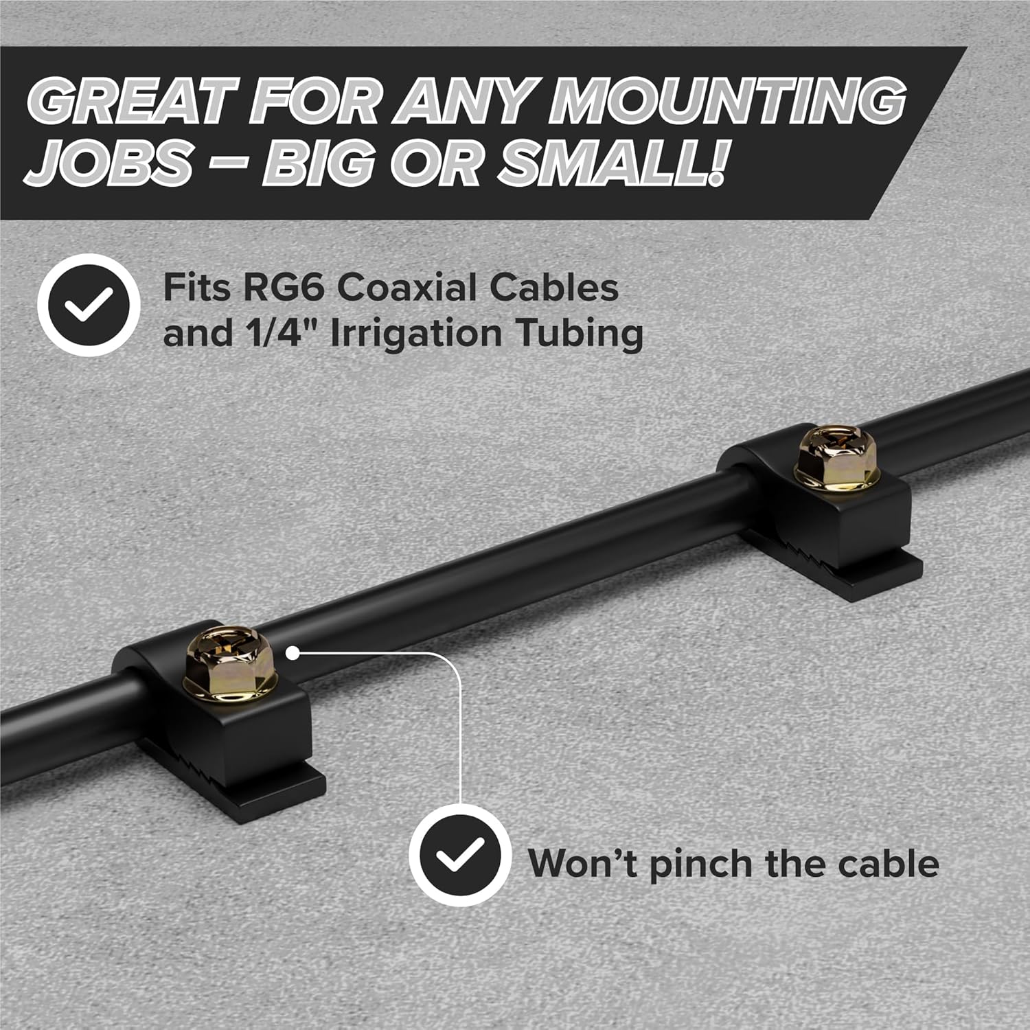 - 50 Black Cable Clips with Screws: Our coaxial cable clips are constructed with durable plastic that won't damage coaxial cables and wires, while also preventing electrical shorts.