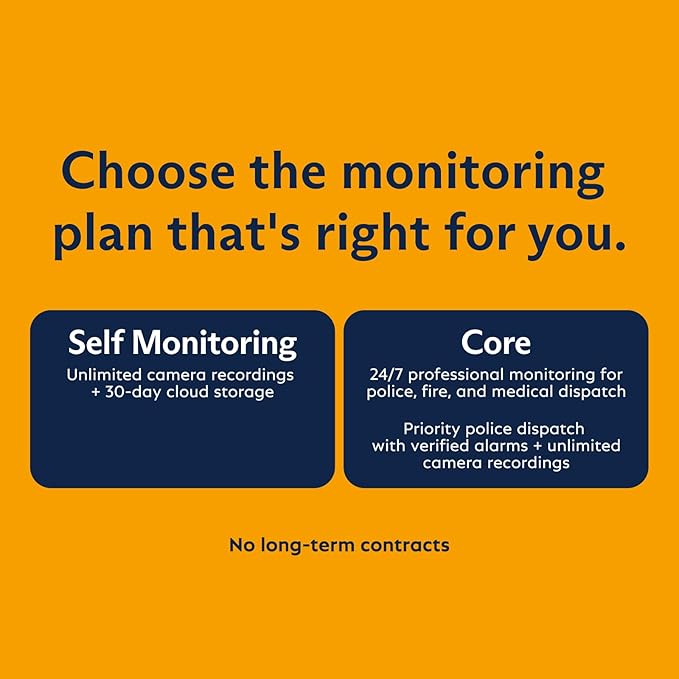 - 1 FREE month of professional monitoring for fast police response when you need it most. With optional monitoring services, our agents keep watch even when you can't, ready to instantly alert emergency responders. Starting at less than $1/day with no long-term contracts or hidden fees. (SimpliSafe products and professional monitoring services are only offered for sale and supported in the US)