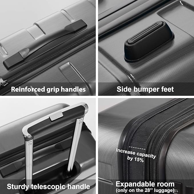 Coolife Luggage Expandable 3 Piece Sets PC+ABS Spinner Suitcase 20 inch 24 inch 28 inch (Charcoal., 3 piece set)