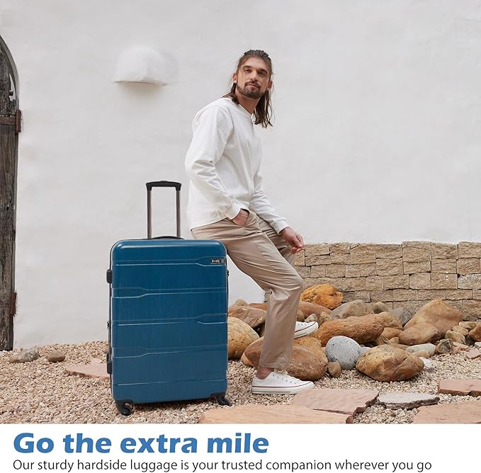 - The suitcase benefits hugely from its ABS+PC hard plastic shell. it goes through insanely strict quality control test standards, creating strong and sturdy pieces that can withstand any forms of rough handling.