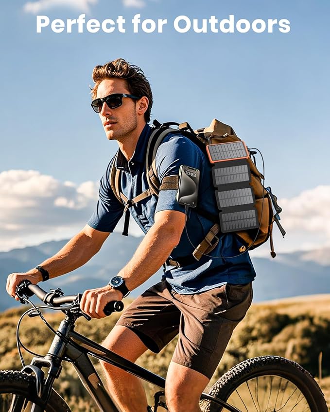 - 2025 Upgraded Solar Panels: Experience a breakthrough in solar charging technology with our 2025 high-performance solar charger. It features four state-of-the-art solar panels that are up to 10 times more efficient than standard single-panel chargers. This power bank ensures your devices stay powered wherever you are.