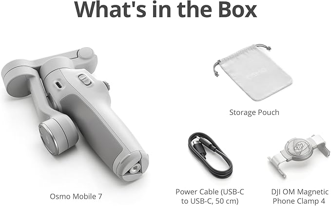- Includes the gimbal, magnetic phone clamp, etc. Experience smooth tracking in a lightweight, portable design. For more creative possibilities, you can buy the DJI OM 7 Series Tracking Kit separately.