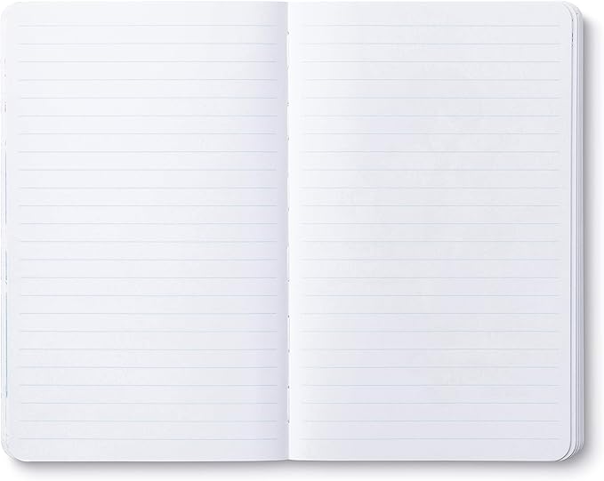 - FEATURES & DIMENSIONS: Softcover notebook, 128 lined pages, 5"W x 8"H; printed with soy inks on FSC-Mix certified paper.