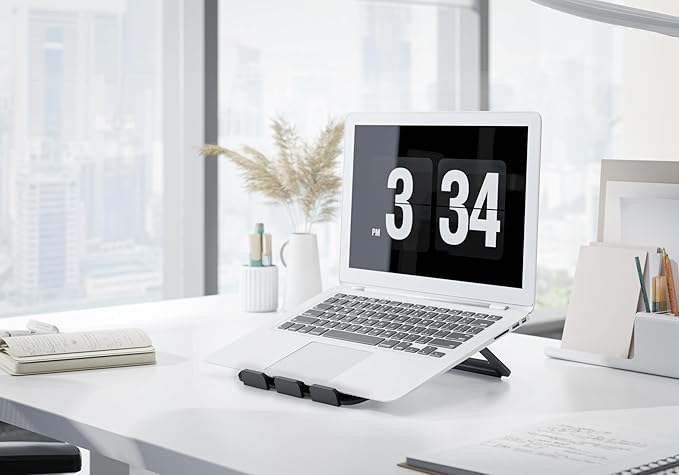 - Foldable stand for laptops up to 13 inches with 18-degree tilt and 2.95 inch lift