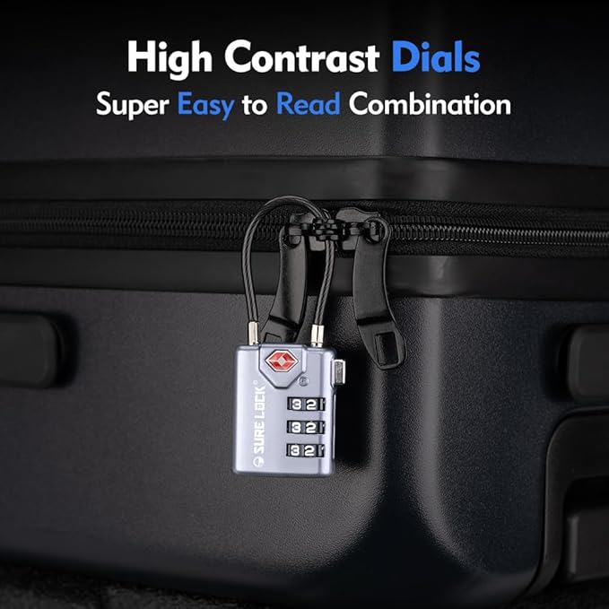 SURE LOCK TSA Compatible Travel Luggage Locks, Inspection Indicator, Easy Read Dials TSA Approved with Zinc Alloy Grey 4 Pack