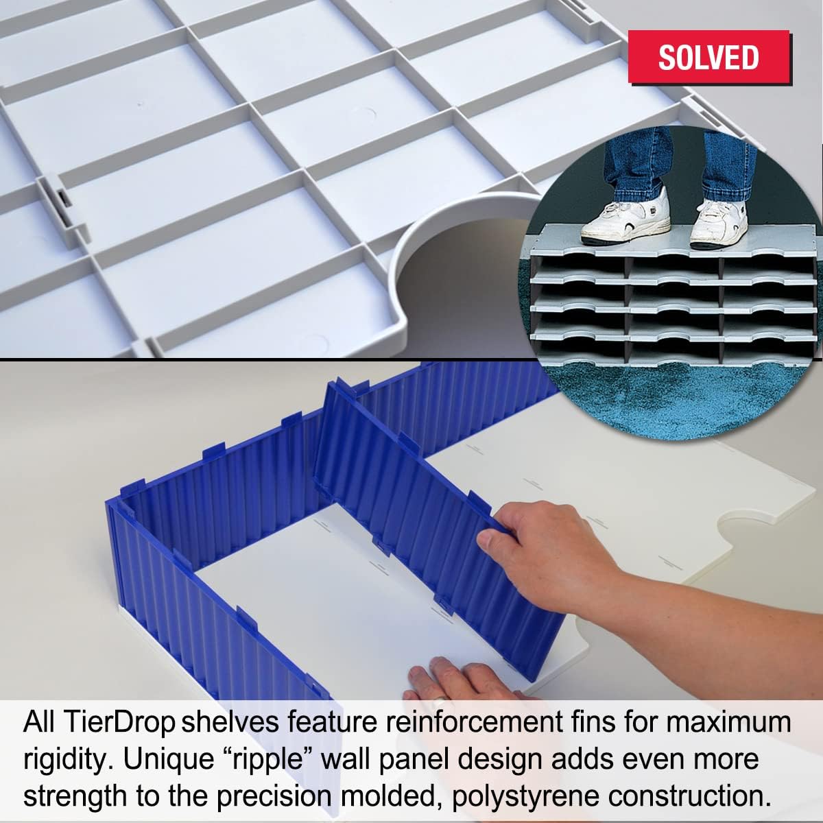 - THE STRENGTH OF STEEL AT A FRACTION OF THE COST - Precision molded in Switzerland, each TierDrop platform features underside reinforcement fins for extra strength and superior rigidity. The unique rippled side and back wall design combine with the platforms to create a literature organizer that will stand the test of time. No dented or rusted steel and no sagging corrugated cardboard.