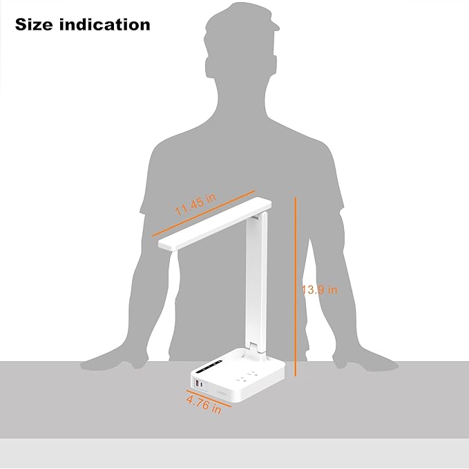 - 【Multiple Functions】2 Ports USB Charger(5V/4.5A),Type C Ports,2 Outlet Power Socket(1250W), memory function, 3 lighting modes, 3 brightness Levels, 60-minute timer, office lamp, night light, task work lamp, dorm arm lamp,reading lamp,computer lamp.College dorm room essentials for students.