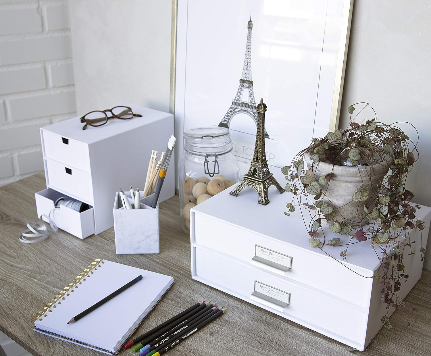 - Organize in Style: Our Ingrid desk organizer with drawers is the perfect way to maximize your desktop space while keeping your supplies out of the way and easy to find! This sleek box dresses up and tidies up your office while being a storage essential.