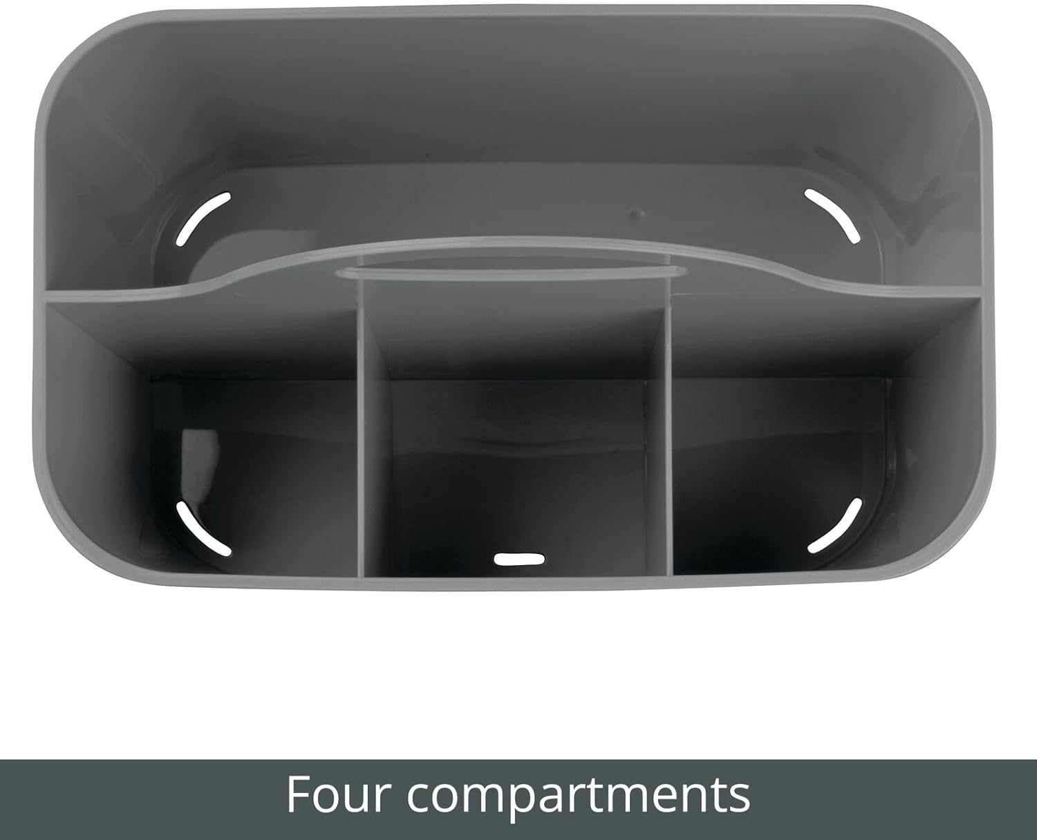 mDesign Plastic Small Office Storage Organizer Utility Tote Caddy with Handle for Cabinets, Desks, Workspaces - Hold Desktop Office Supplies, Pencils, Staplers Lumiere Collection, 2 Pack, Dark Gray