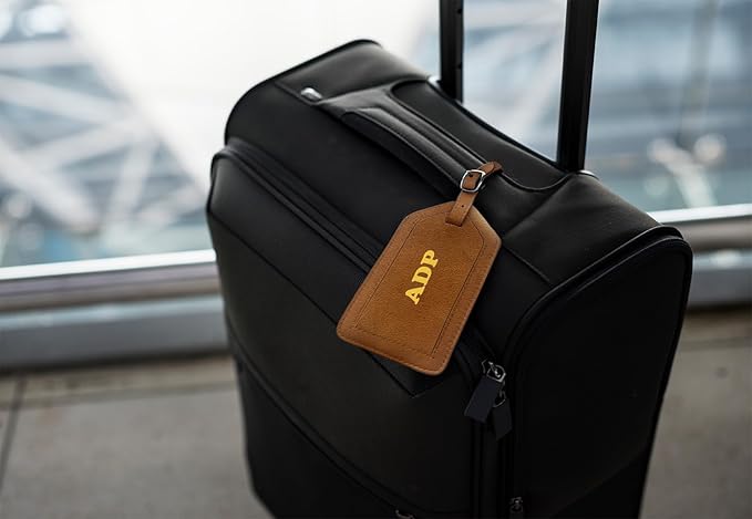 - Two Luggage Tags: strong & adjustable buckle and strap keeps securely fastened. Includes protective leather flap for privacy protection. Dimensions: 2.75" x 4.5" (not including buckle)
