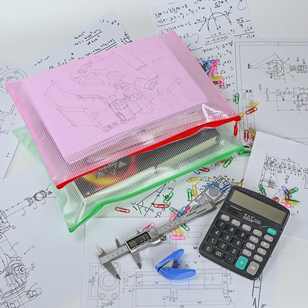 - 10 PCS Plastic mesh zipper bags, 15 x 11 inch B4 size. Widely used in office supplies, school, home daily life, hospital and travel. These pouches could meet your needs in all ways