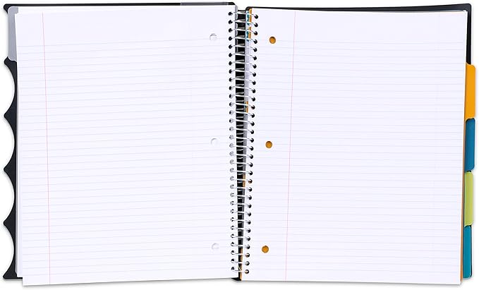 Mintra Office Durable PREMIUM Spiral Notebook, ((Black, 5 Subject, 8.5in x 11in)), Fabric Covered Coils, No Snags, Removable Adjustable Pocket Dividers, Ruler, Organization, Customizable