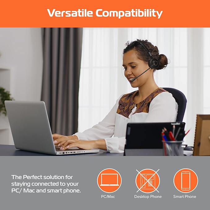 - Intuitive Controls and Wide Compatibility: With intuitive controls for seamless volume adjustment, music playback, and call management, this USB headset with microphone is designed for user-friendly operation. The dedicated mute button allows for quick silencing of the microphone when needed. Compatible with a wide range of Bluetooth-enabled devices, this wireless headphones noise cancelling device is great for both professional and personal use