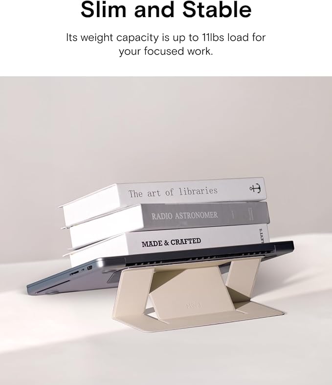 - [Reliably Strong MacBook Stand] It's built with unique PU and fiber glass materials, ensuring that it can hold a laptop stably with its small body. 11lbs is its weight bearing, covering most macbook and laptops without vents.