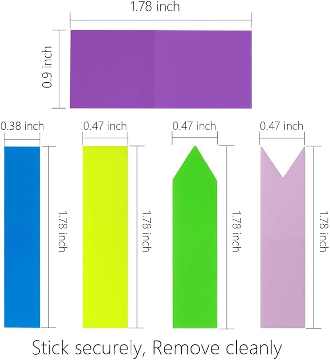 - Versatile Design-Designed with versatility in mind, our sticky note tabs can be used in a variety of ways. From color-coding your notes to creating visual bookmarks, these tabs offer endless possibilities for organization and creativity