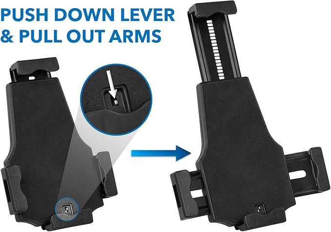 - Secure Grab & Go - Locking universal tablet mount with quick release clamp for a mobile tablet kiosk; Keyed locking security system allows for easy removal