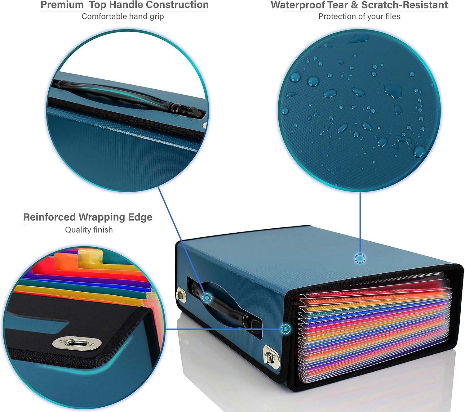 CNK Accordion File Organizer - 36 Pocket Teal Folder with Ergonomic Handle, Double Lock Buckles, Protects Documents, Durable Polypropylene, 8.5 x 11 in