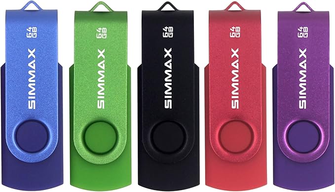 USB Flash Drives 5 Pack 64GB Memory Stick Swivel Design USB 2.0 Flash Drive Thumb Drive Zip Drives (64GB Blue Green Black Red Purple)