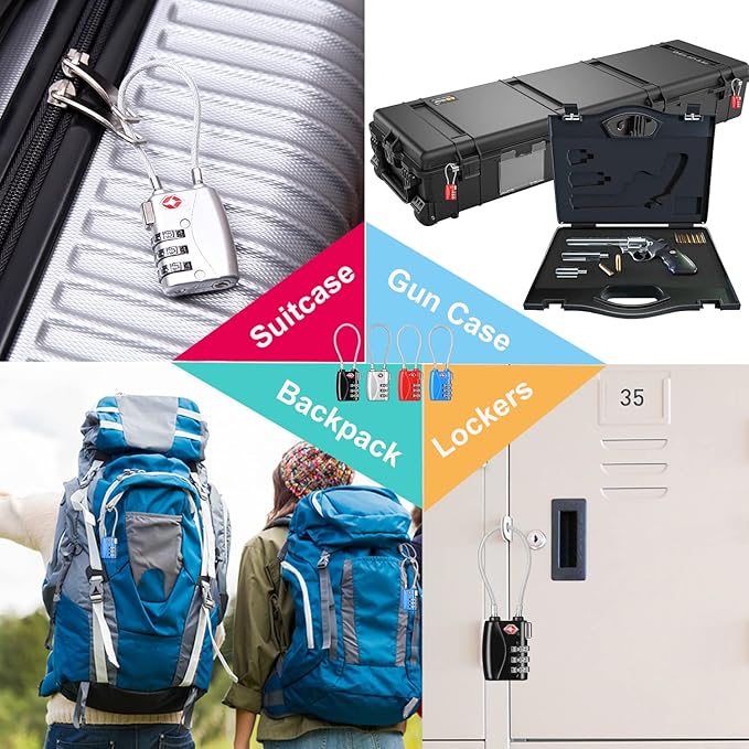- Flexible Cable Design: Unlike traditional locks with shackle, the tsa wire locks are flexible to thread through all standard sized zippers and hard case lock holes.The reinforced cable can link 2-3 sets of zippers at one time to secure the entire case/bag.