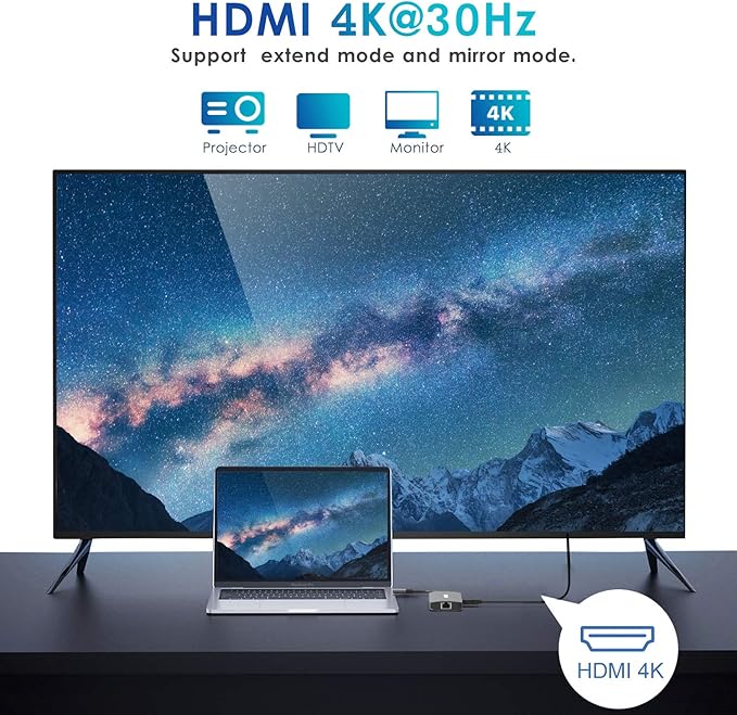 - 4K video USB-C to HDMI Adapter: MOKiN mac dongle mirror or extend your screens and directly stream 4K UHD 30Hz or Full HD 1080p video to HDTV, monitor or projector.