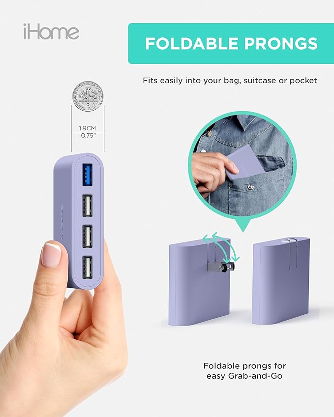 - FOLDABLE PRONGS: You won't find another iPhone block wall charger that fits as easily into your bag or suitcase as the iHome AC Pro 4 USB wall charger.