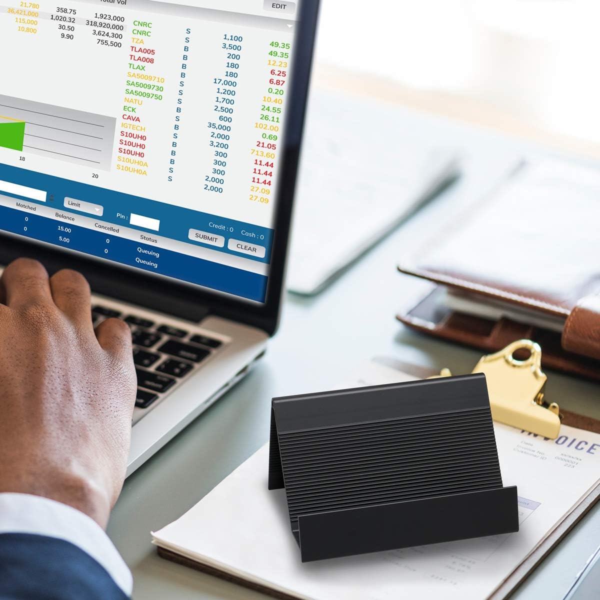 Business Card Holder Aluminum Business Card Display Stand Desktop Organizer, High-end New Series (Black) 2 Pack