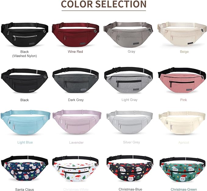 - ▶ Best Gifts for Women Men,Enjoy Various Activities and Festival Hands-Free — The Fanny Pack size is about 14.3"x 5.9" x 3.5" with 4(Four) zippered pockets perfect for most people who want to be hands free to carry the most needed items,include all size of phone, passport, keys,ID and other small items.Perfect for various activities such as Shopping,Traveling,Walking,Cycling,Hiking,Holidays,Festivals and so on.A great ThanksGiving and Christmas Gift for Women Men Children and Family.