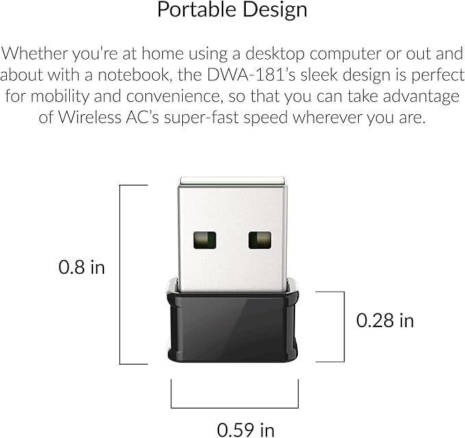 D-Link USB WiFi Adapter Dual Band AC1300 Wireless Internet for Desktop PC Laptop Gaming MU-MIMO Windows Mac Linux Supported (DWA-181-US)