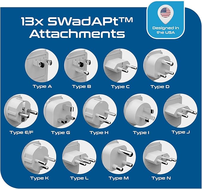 - [No 1 Travel Adapter Brand] Safest designed in the USA Makes our adapters The most reliable and no 1 adapters in the market Complete world Adaptor package - use anywhere in world without having to worry about the correct Plug adapter Type