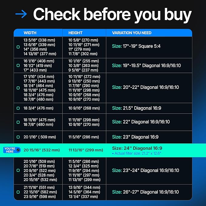 Acrylic 24 Inch Computer Privacy Screen Filter for Widescreen Computer Monitors - 21.2" x 12.6" (540 x 319mm) - Monitor Frame Hanging Type